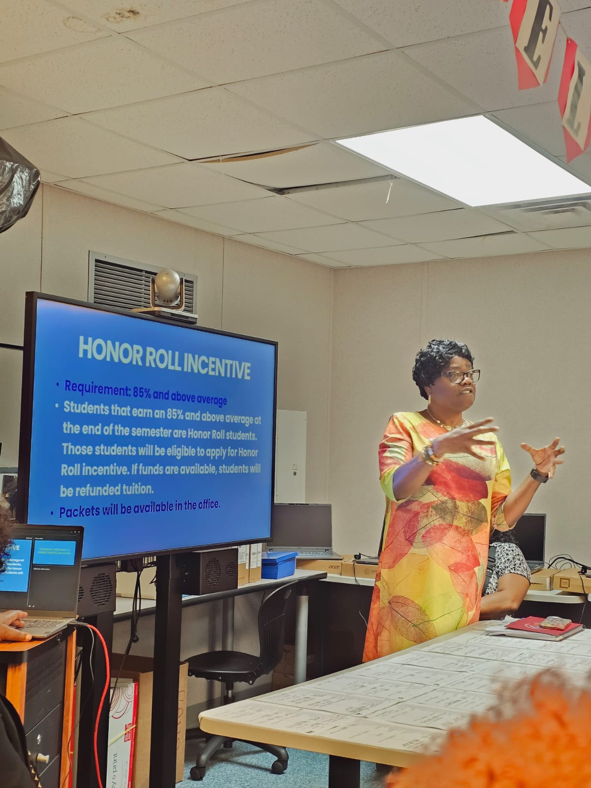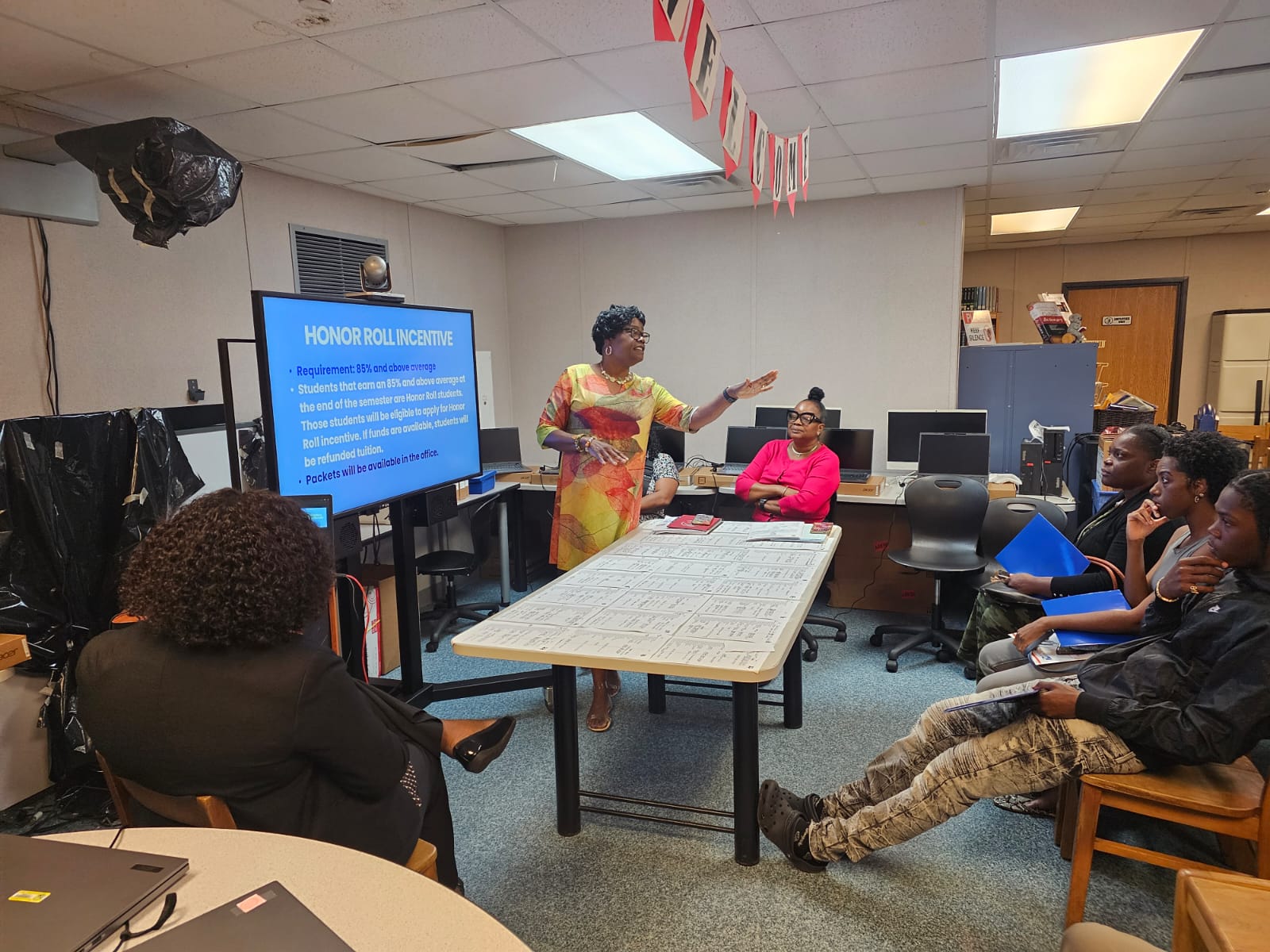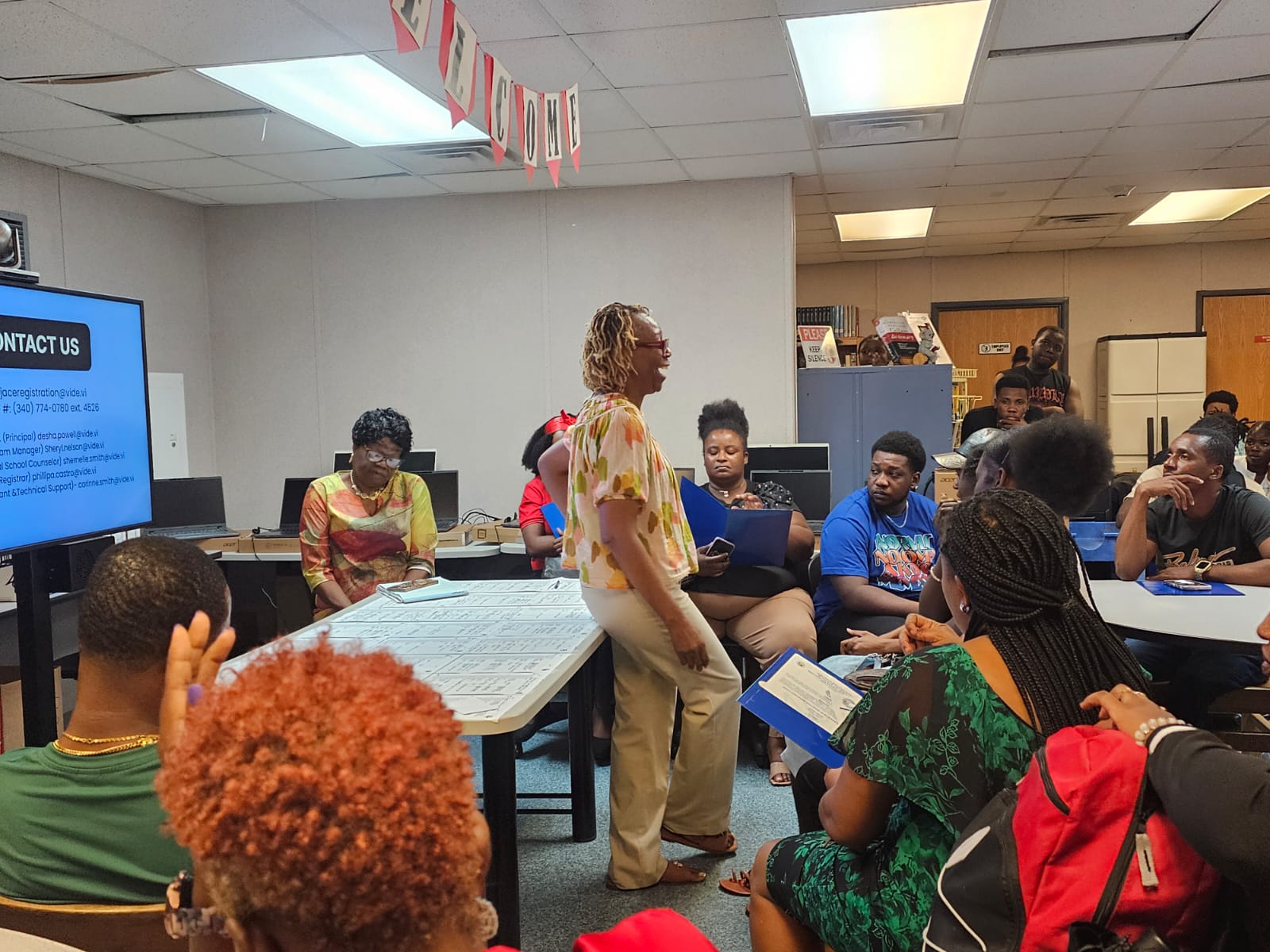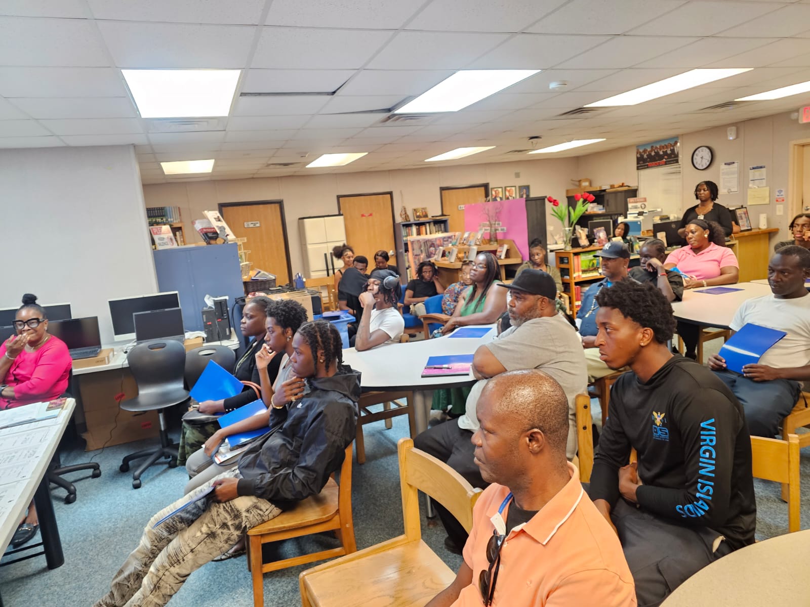 BOE Financial Aid Coordinator, Sylvanie Rhymer, presented a financial aid workshop to the seniors at ACE. She shared information regarding BOE Territorial Scholarships and the Special Legislative Programs for the academic school year 2024-2025. Students received a detailed list of all the different types of scholarships including those specific to career paths. It was an informative session for seniors who were not aware of the financial assistance provided by BOE.